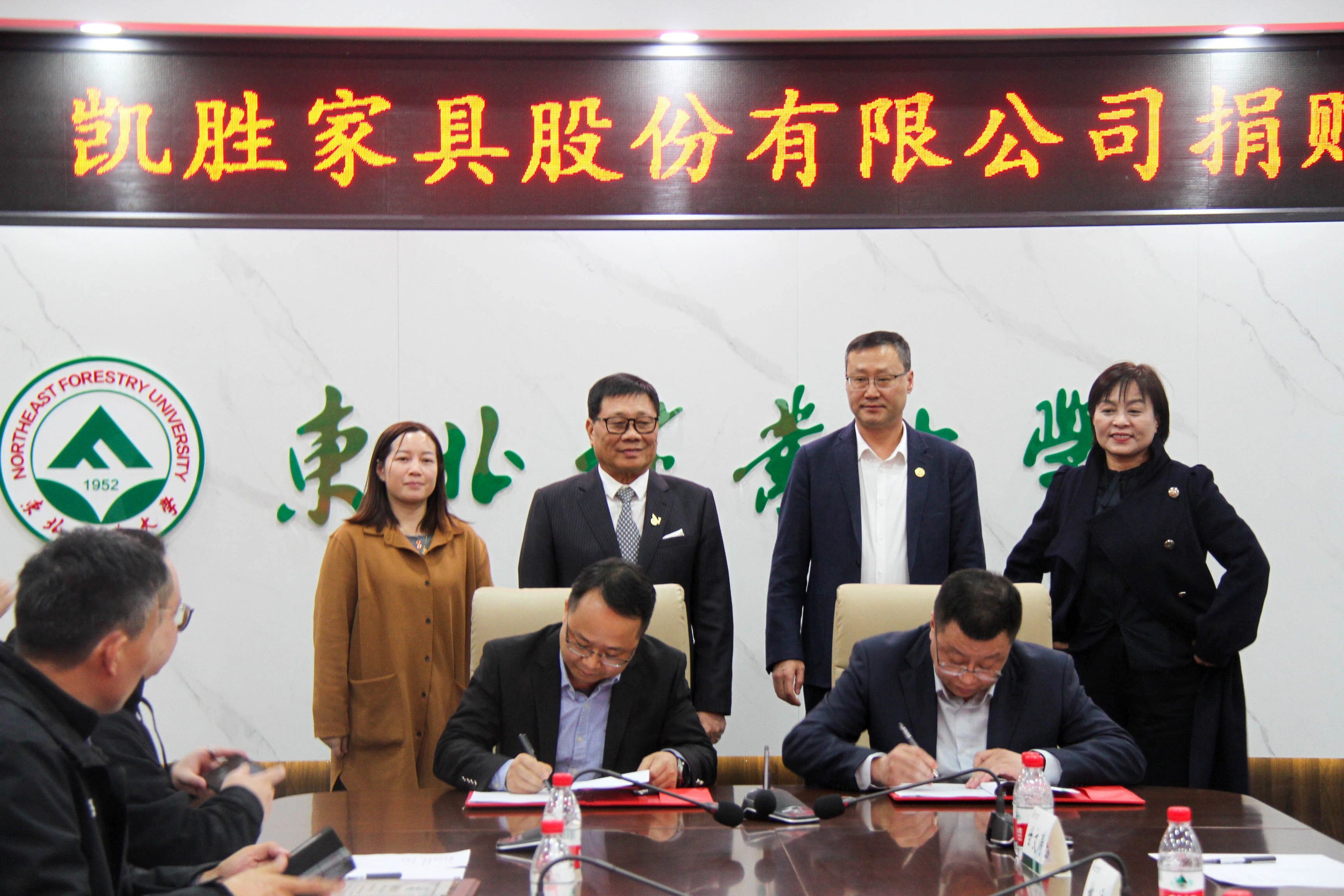 凯胜家具股份有限公司董事长罗子文一行,校长宋文龙,校友办、科研院、家居与艺术设计学院领导班子及教师代表出席捐赠仪式。家居与艺术设计学院院长宋永明主持仪式。