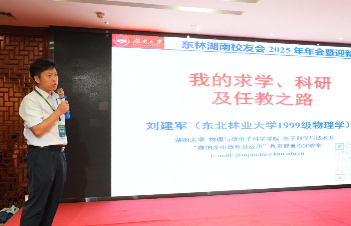 在“优秀校友分享”环节,99级物理学专业校友、湖南大学博士生导师刘建军以《跨越·创新·传承——我的学术之路》为题,讲述从东林学子到科研领军者的成长历程。
