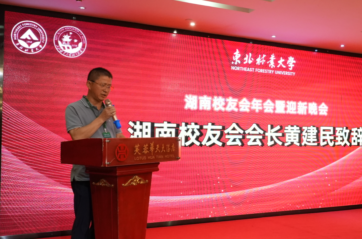 东北林业大学湖南校友会会长、87级家具专业校友黄建民发表热情洋溢的欢迎辞。他全面回顾了过去一年校友会在平台建设、资源整合方面取得的成果,并表示:“校友会将继续当好‘桥梁’与‘纽带’,为校友发展提供更多支持。”