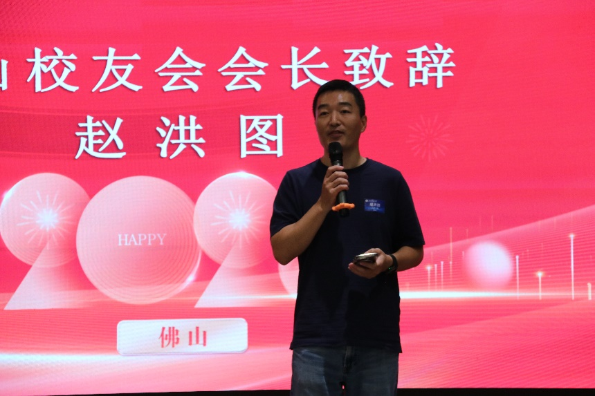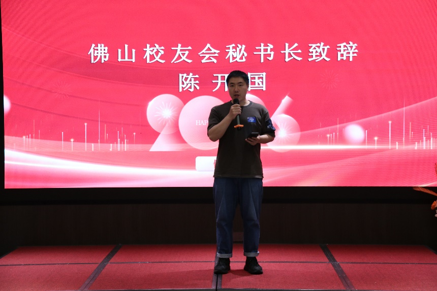 简单的开场过后,会长赵洪图致辞,他表达了对兄弟校友会代表及在佛校友的热烈欢迎,分享了在佛山相聚的喜悦,强调了搭建同城校友平台的重要意义,希望大家能借助这个平台增进交流、互帮互助,在岭南这片热土上携手共进。秘书长陈开国详细介绍了佛山校友会近几年的变化与后续的发展规划,真诚邀请每一位校友积极参与,共同壮大佛山校友大家庭,真挚的话语赢得了现场校友们的阵阵掌声。